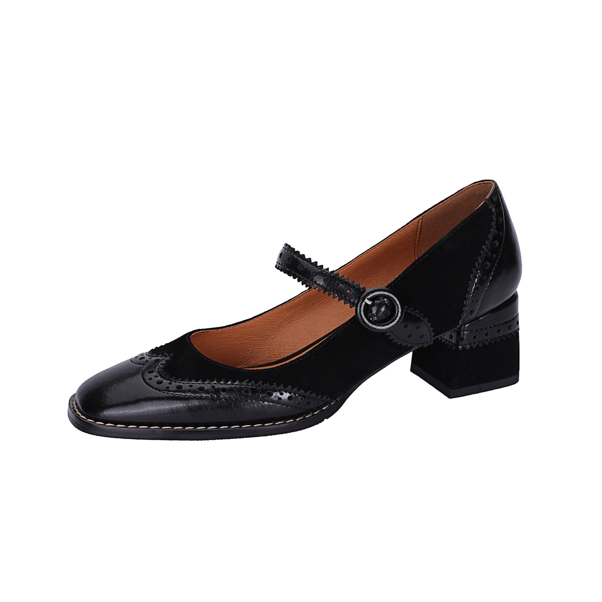 2024 New Mary Jane Thick-Soled Women's High Heels-Brogue Cowhide Cashmere Upper